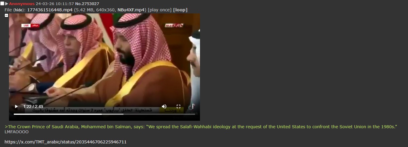 >>2762554I don't think you even know what a Wahabi is besides some random buzzword you've seen online.
