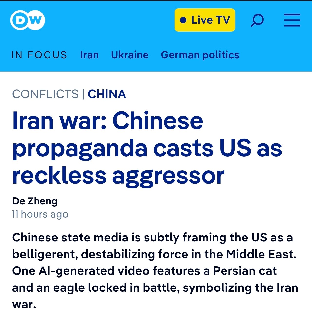dw is at it again: It's Chynah's fault that you hate the US so much.