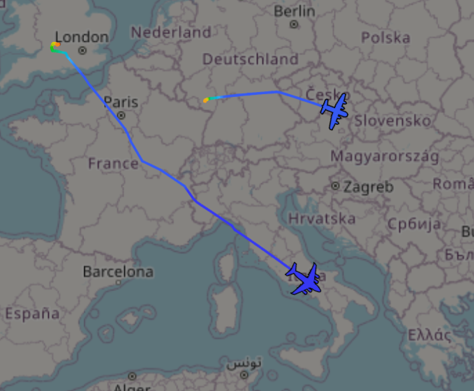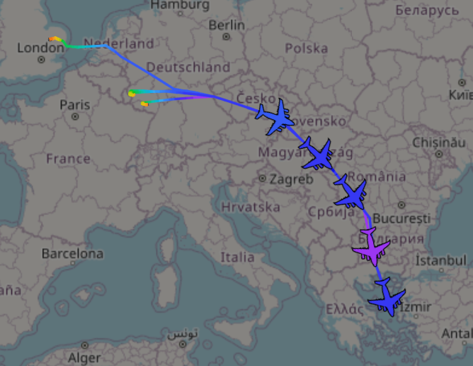 Currently two C-17s and two KC-135s heading to MENA, and earlier today there were six C-17s.
