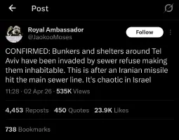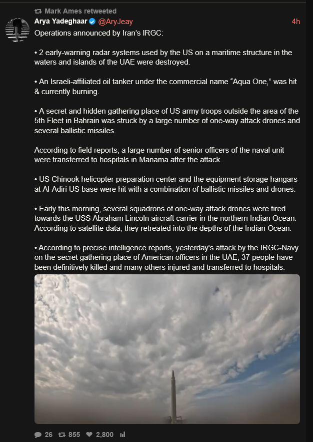 >>2764941>what about them energy grids and desalination plantsEnergy maybe but the desalination plants are Irans nuclear option. Those go and the entire region is fucked. We’re talking tens of millions of refugees, decades to make the region habitable again if at all possible. Iran would be fine as they only rely on 2% of water from desalination. But they are prolly very hesitant to start a massive humanitarian crisis that kills hundreds of thousands and leaves 10s of millions homeless. All that labor leaving the region would also further collapse the oil markets. Thankfully Iran is a moral and rational actor on the global stage, and hopefully it doesn’t come to that