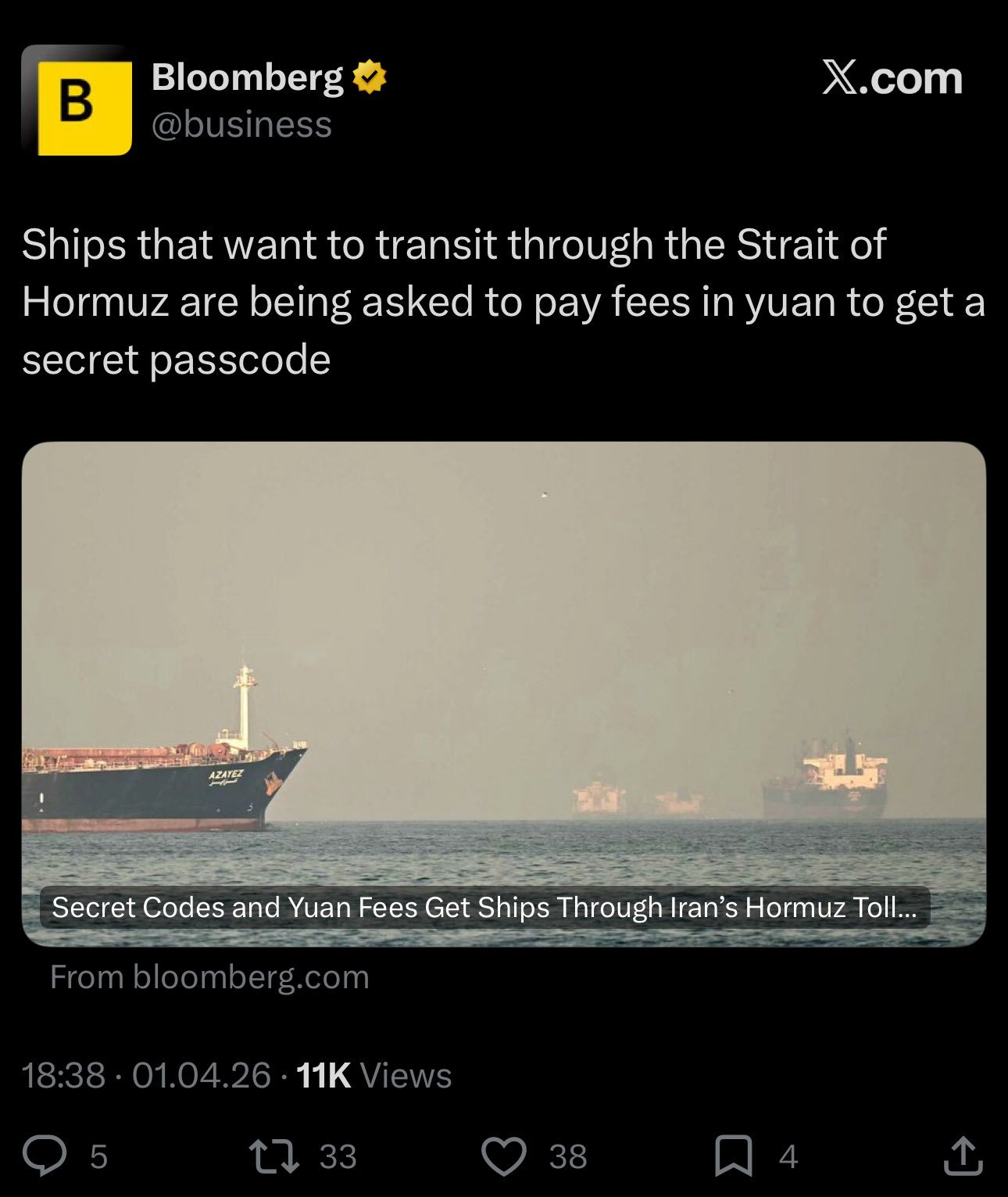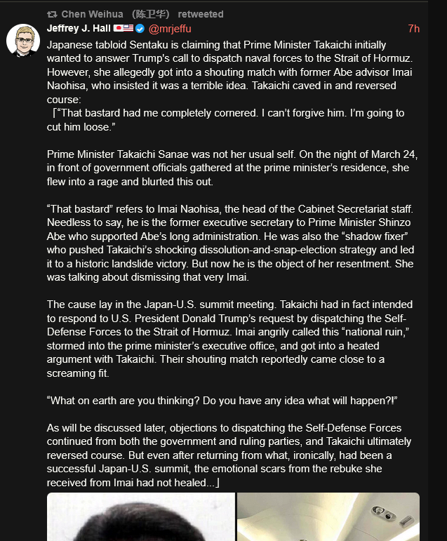 >BREAKING: Russia, China, and France are blocking an Arab-backed push at the UN Security Council to authorize military action against Iran to reopen the Strait of Hormuz, per NYT.