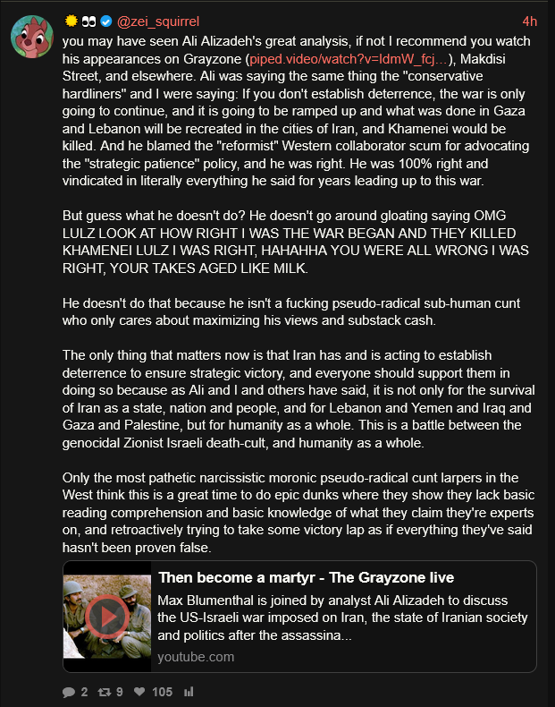 >>2764972unfortunately khamenei (sp?) isn't an evil degenerate like the leaders of the west