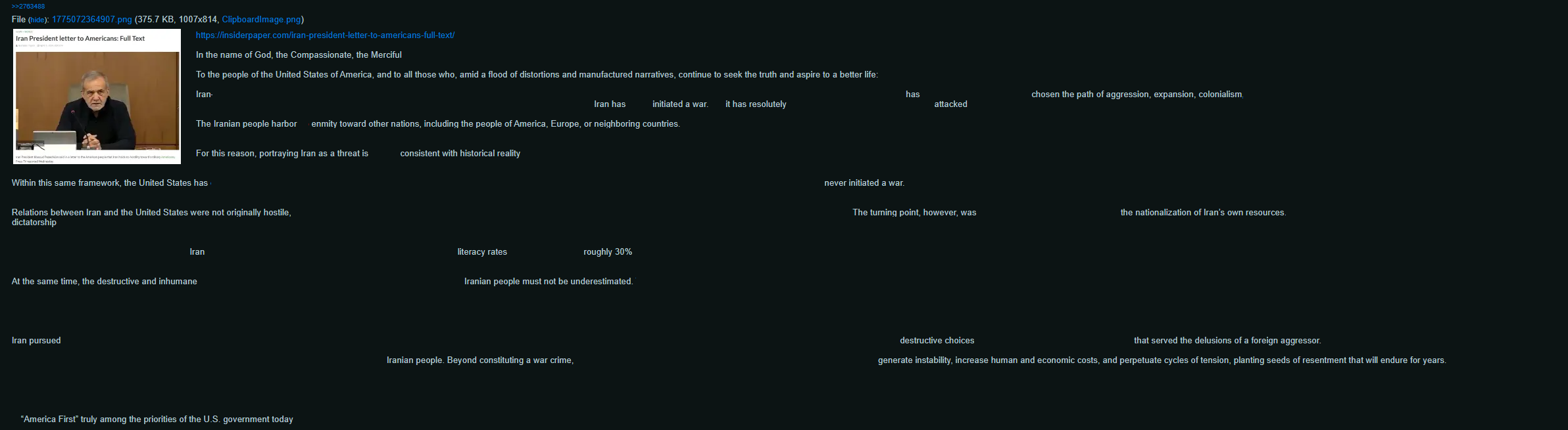 >>2762886>Iran War: Chinese propaganda tells the truthwow, shocking, horrifying, awful, downdoot