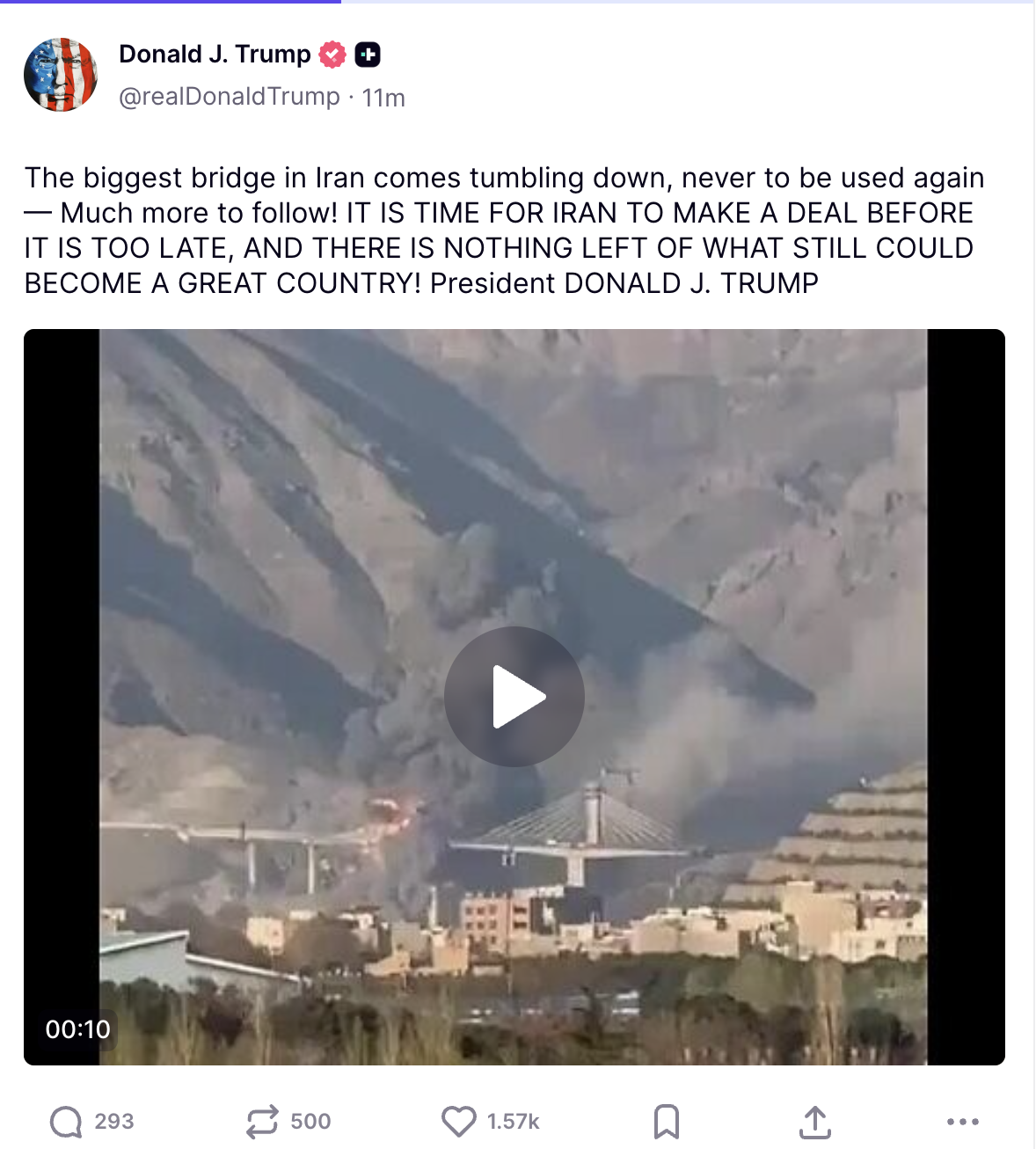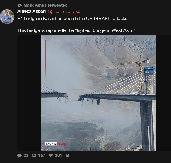 I feel like it would be more than fair if Iran blew up a bridge in Israel, given Israel blew up one of their bridges.