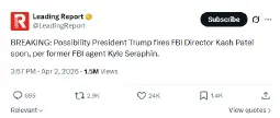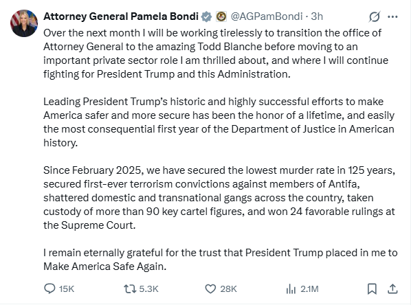 >>2765158yes, it's official. for the mishandling of the epstein files. if I have to guess, there were too many mentions of trump in the releases