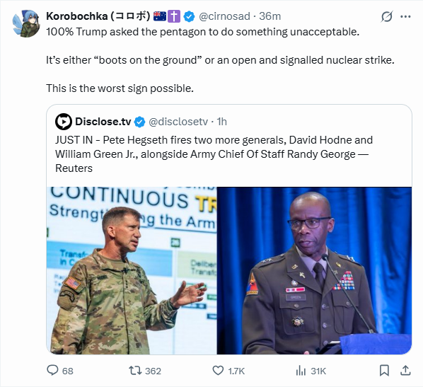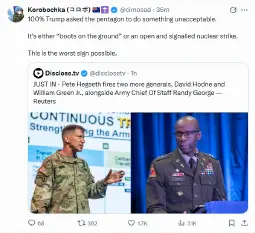 >>2765305I bet it's probably decided, and that's why they are getting rid off the chief of staff who doesn't agree with that. same shit with the southcom generals who were put into early retirement over the decision to kidnap Maduro.