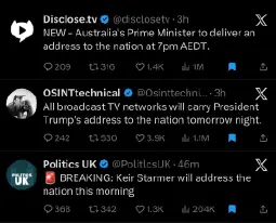 Trump scheduled to give address tomorrow at 9pm.