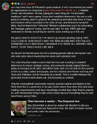 Israel is picking a fight with an adversary that has way more staying power than their prepared for a 14 day war shitstain of a country. it is bound to get strangled. Israel can of course make it a real tussle, but it won't walk away without it's throat getting slit.