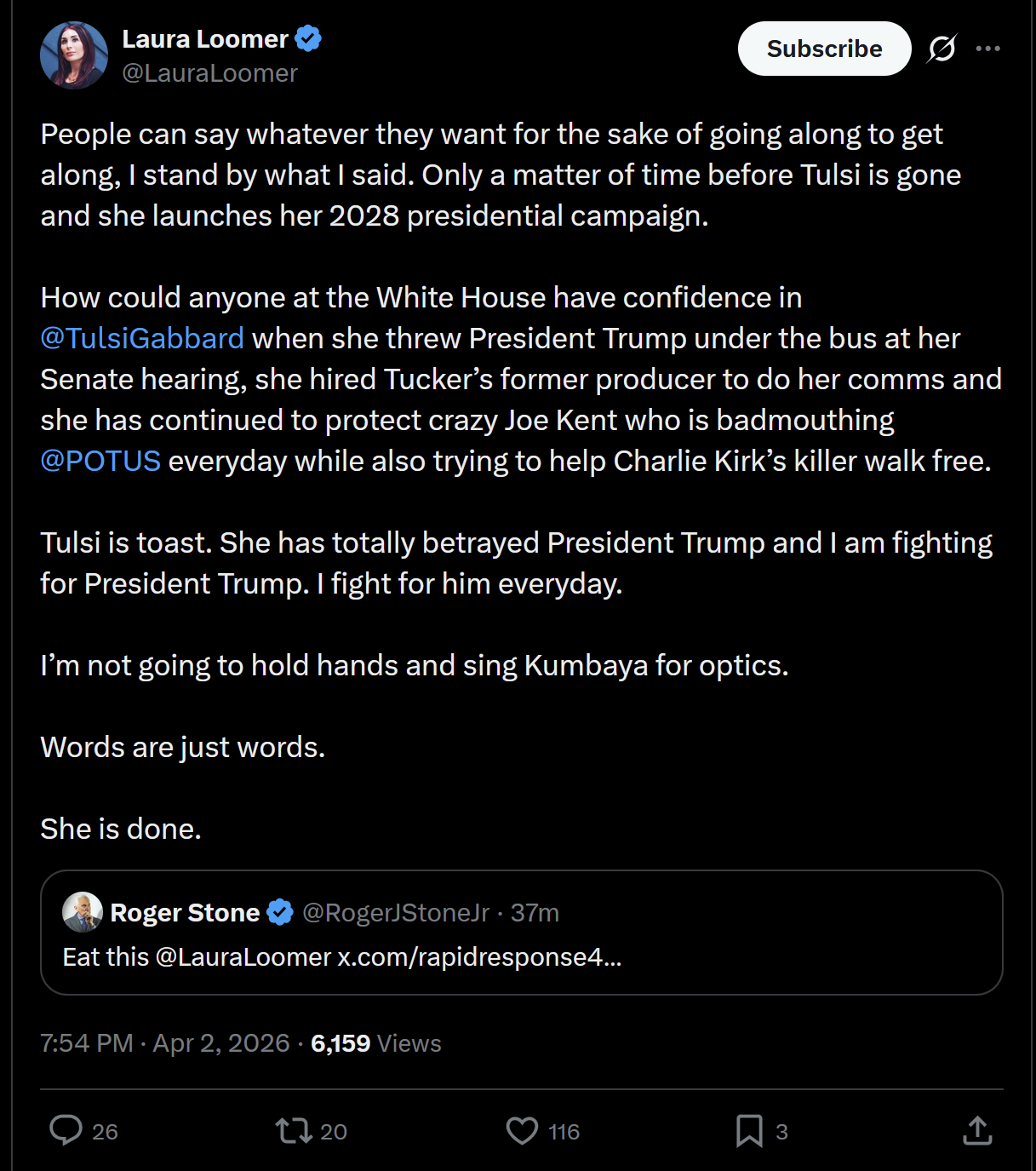 >>2765294Why does she want credit for a 'scoop' during war when that makes her a target and who would share intel with someone so unhinged?