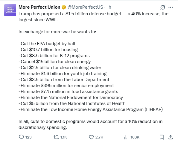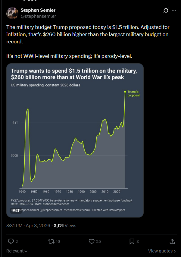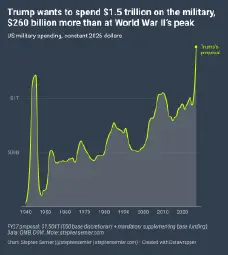 so apparently trump wants a whopping 40% increase to the defense budget and this is being extremely underreported and undercommented