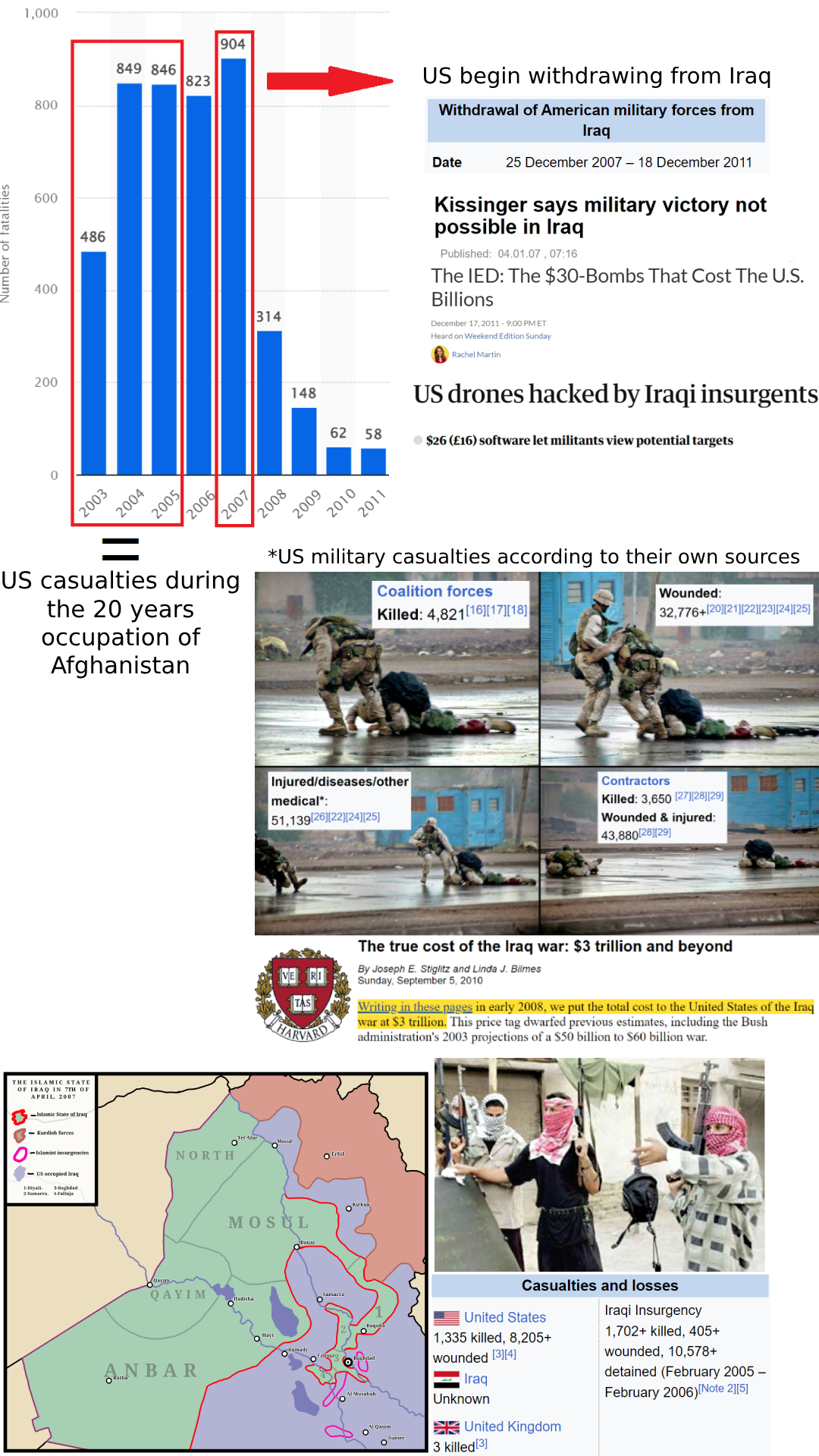 >>2765189The Iraqi nationalist insurgency killed more troops in its first 3 years (before Al-Qaeda and Iran started a sectarian war) than the entire occupation of Afghanistan