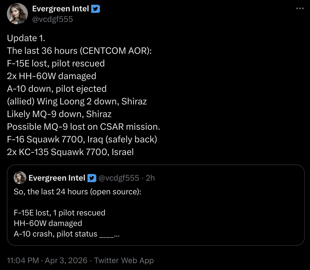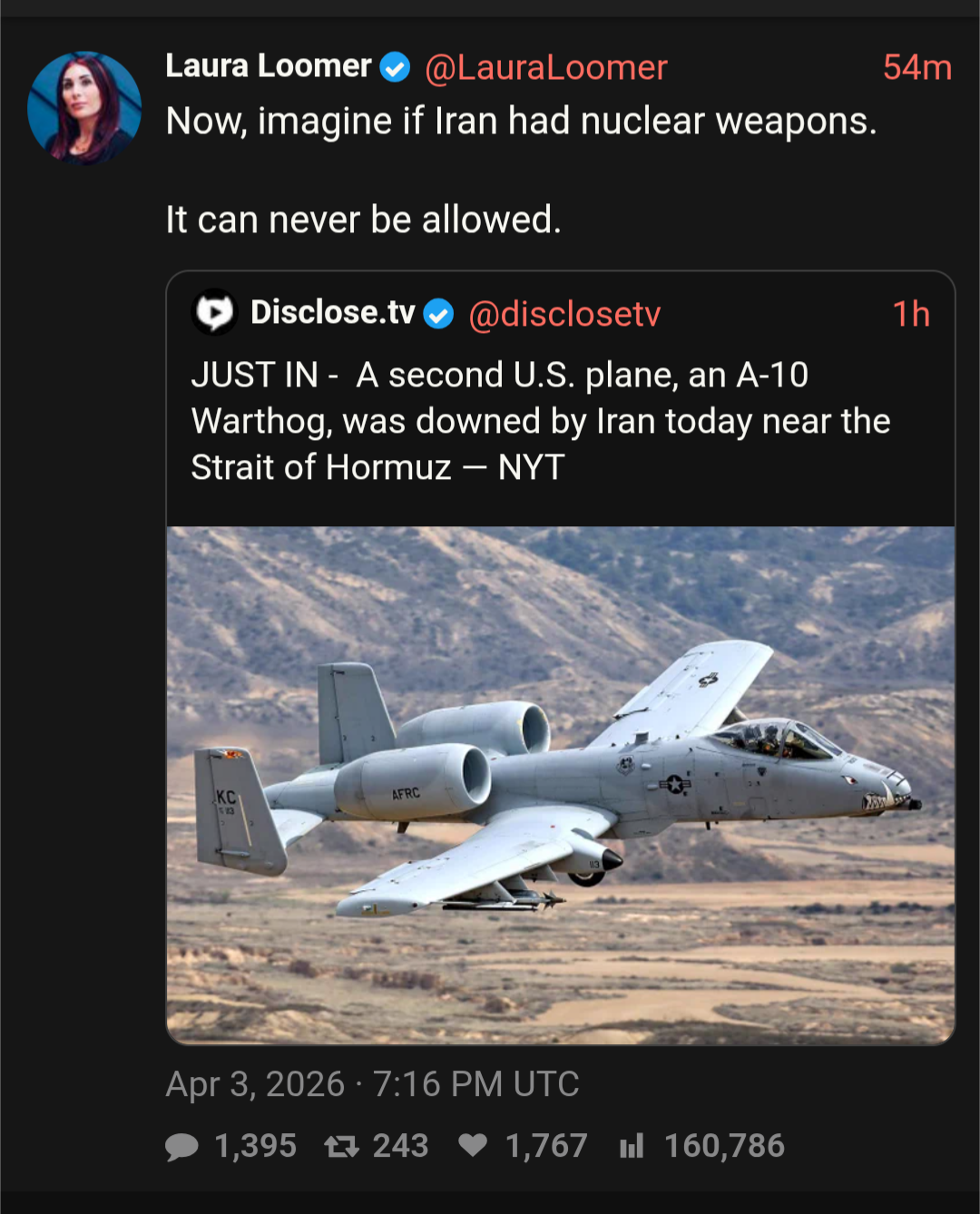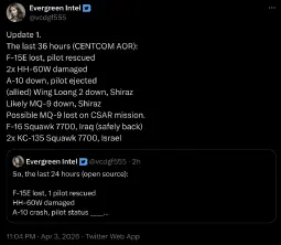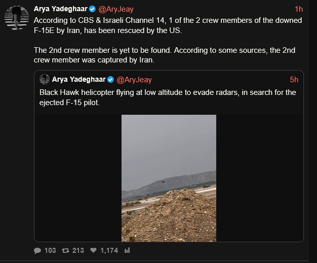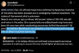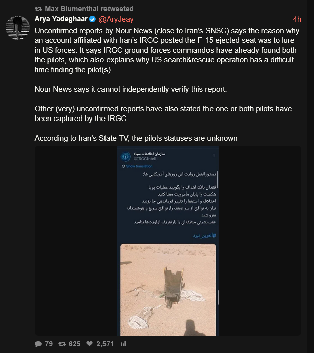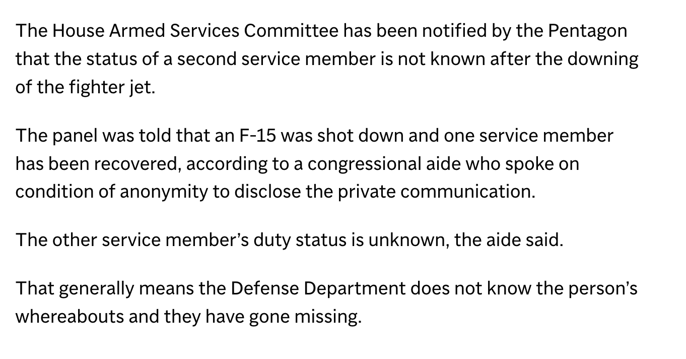 >>2766797 >>2766796there's one pilot that hasn't been recovered. I am waiting, but rumors are, the other was found by Iranians.