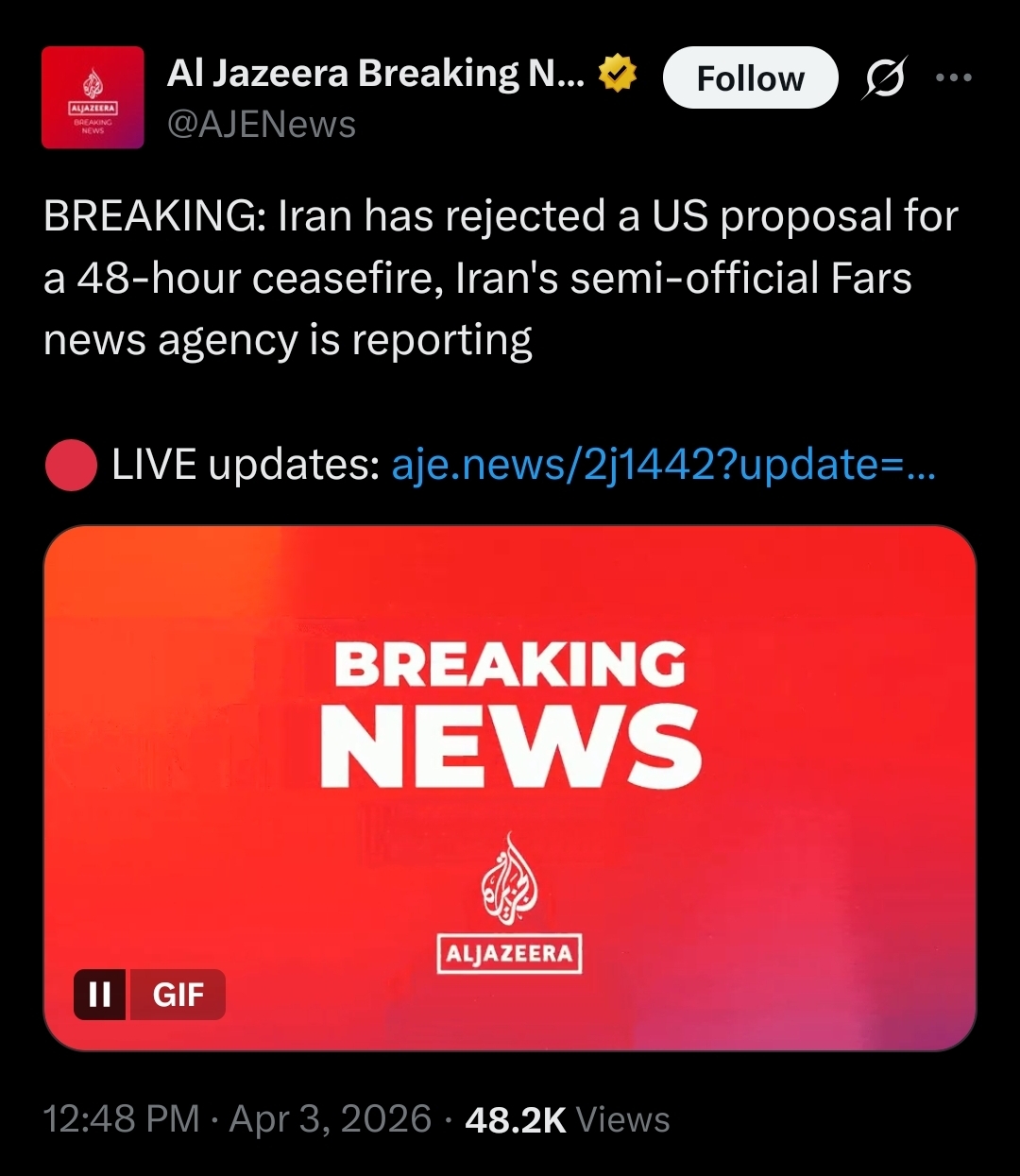 >A Bloomberg article where Iran's president repeated some of their demands for a ceasefire was misread by trading algorithms as new information, and the S&P 500 ended the day up around 3%, undoing slightly less than half the losses over the year-to-date in one day.