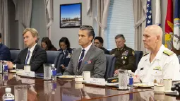 Important name involved is Elbridge Colby in the suit next to Hegseth in this pic. Hes' the undersecretary of defense for policy. Hegseth is more of a hype man from Fox News.