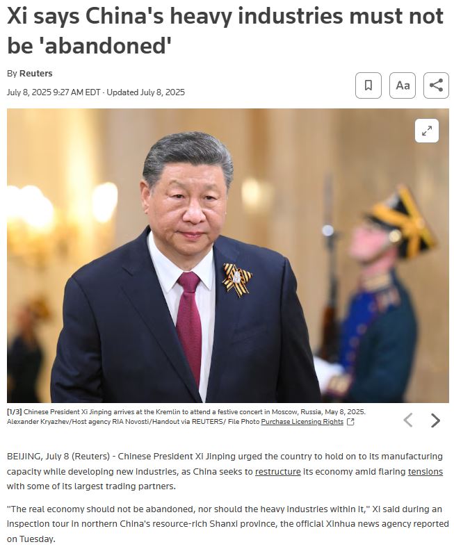 Xi’s slogan means Beijing is now extending state support to sectors once deemed outdated like steel, machinery and textiles. They will continue to build an industrial system backed by subsidies and political orders.