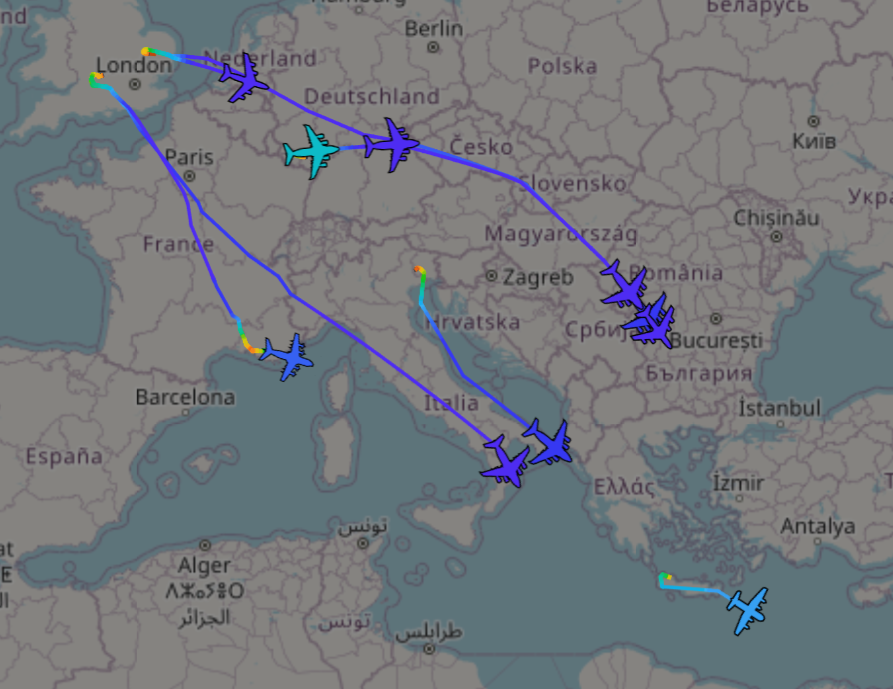Currently six C-17s, two KC-135s, one A-400 and one C-130 heading to MENA, and earlier today there were six C-17s and one KC-135.