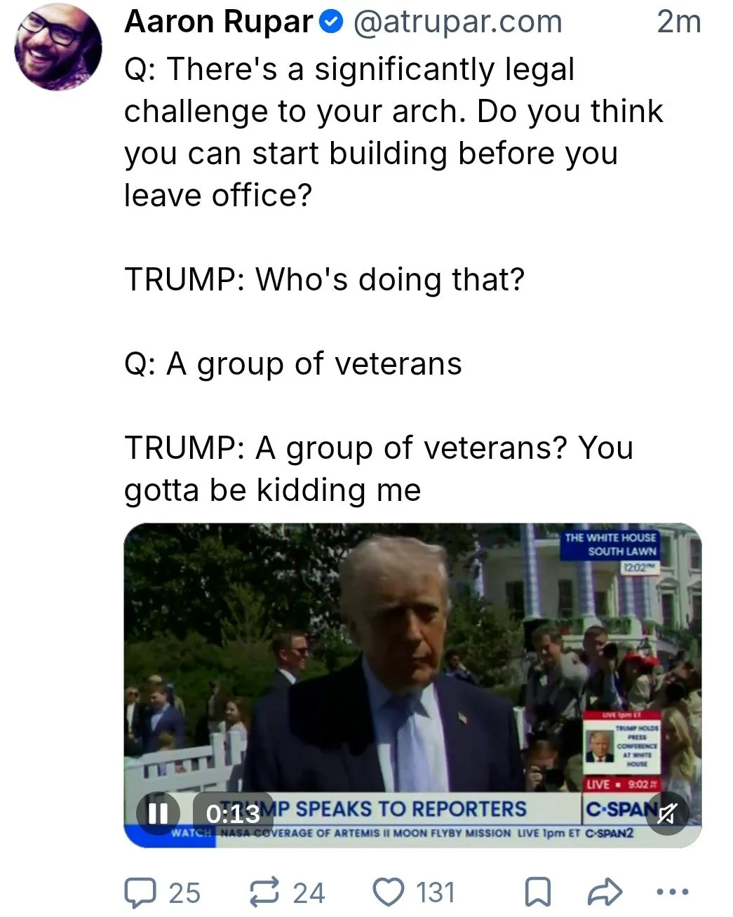 >>2774021Trump is really trying to burn EVERYTHING down huh? Nothing is sacred, nothing is off limits. Undistilled nihilism.