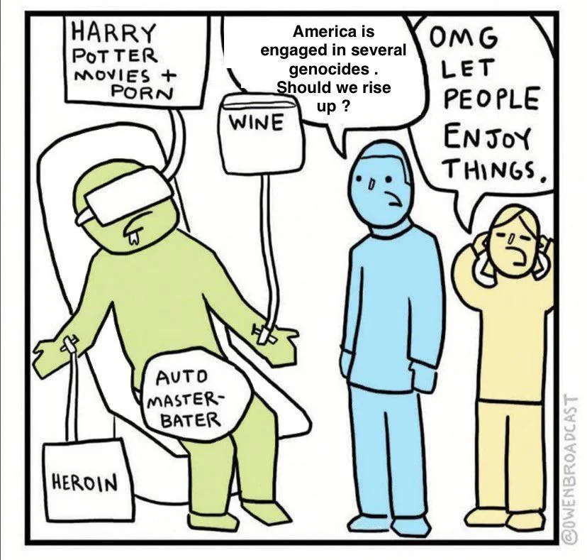 Because global oil is largely traded in US dollars, there is constant worldwide demand for the currency, which helps the US government borrow cheaply and devalue its own currency through money printing and sustain higher spending without raising taxes as much. This, combined with a relatively strong dollar, allows Americans to enjoy cheaper imported goods, accessible credit, and more stable financial conditions, while the dominance of US financial markets supports service sector jobs and investment returns while outsourcing commodity production to the global South. Together, these factors can raise overall living standards for the American and cushion economic downturns, which, reduces the likelihood of widespread unrest by keeping consumption levels and economic security relatively high. Thankfully Iran is bringing this system to an end, which will proletarianize Americans again, forcing them to finally realize revolutionary potential… or they'll just go full fascist finally.