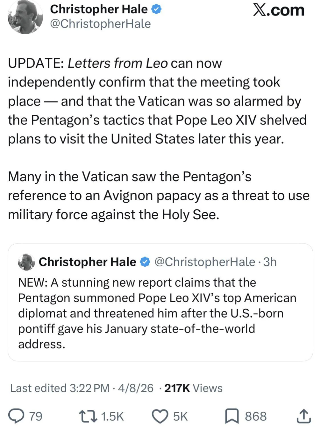 >>2774337>>2774195Vance should be excommunicado for killing the previous pope