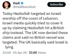 As for Starmer potentially using this to "directly intervene", keep in mind Hezb already bombed their land in Cyprus. This isn't an escalation.