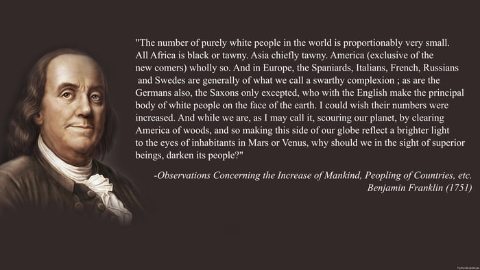 This is incorrect as, while America is a settler-colonial state, nonetheless was founded on the basis of enlightenment principles like equality before the law and liberty, considering how the American and French revolutions at the time were leftist at the time of the events, with the notion of equality of men itself being already extremely radical at a time when absolute monarchies were the standard in Europe. That’s not all, as contrary to popular opinion the Founding Fathers themselves weren’t conservative. Whether it’s the lack of any mention specifying the USA as a “white Christian country” founded on the basis of theology in the constitution and the federalist papers, George Washington himself coming to oppose slavery before the abolitionist movement began to gain momentum, many of said fathers being at best deists or nominally Christian, the USA being effectively the first democratic republic in history with limited suffrage being a short-lived experiment that was swept away in favour of universal male suffrage, Thomas Jefferson himself owning a copy of the Quran and a version of the Bible excised of all supernatural elements and among other examples show that the USA was far from the hotbed of reactionary politics both liberals and chuds tend to portray it as. Even the Indian Removal Act that led to the infamous “Trail of Tears” wasn’t unanimously agreed upon, with strong opposition by Christian missionaries and other politicians who opposed it based on the shared humanity and parity between white settlers Native Americans. Indeed, while such ideals coexisted with institutionalised inequality, it is precisely by appealing to those founding ideals unique to America's foundations that movements like MLK's civil rights was even possible. Indeed, had it not been for America, most of the progressive movements in other parts of the west wouldn't even exist (e.g., Germany's gay liberation movement, extirpated by nazism and only resurged in the postwar period because of the rise of America's gay rights movement.)
