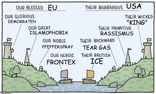 This is more noticeable in north-west Europe, unlike in the poorer parts of the EU across its southern & eastern members which is more subtle but still there. You’ll notice this whenever they talk about America in general, where the venomous parts aren‘t just for the US government but also for Americans as a people. in fact, it wouldn’t be an exaggeration to say that it’s a form of classism since in contrast to European/EU culture, that of the USA is very prole-coded and has been so for a long time, and I think part of the friction between Europeans and Americans has a lot to do with American culture being relatively egalitarian for all of its faults. At least, that’s what I think.