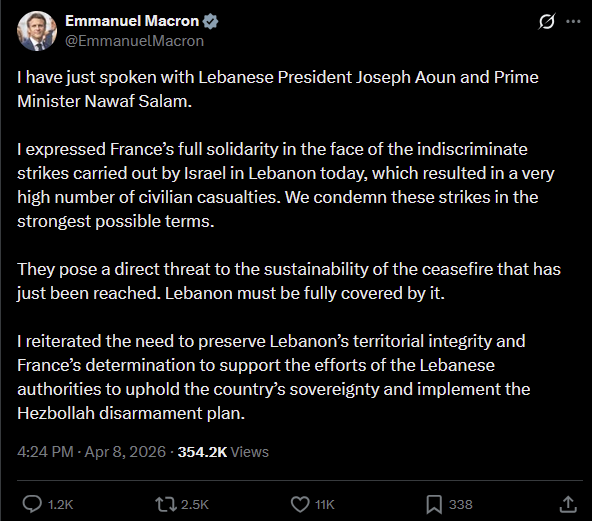 Surely Iran won't let Israel have one of the deadliest bombings of Lebanon, as a treat, even if they promise to respect the so called "ceasefire". Surely they won't let Trump drop the price of oil any further before the weekend. At least if Iran's negotiators got assassinated on their way, like Haniyeh, it'd be funny (and deserved). So there is that to look forward to.