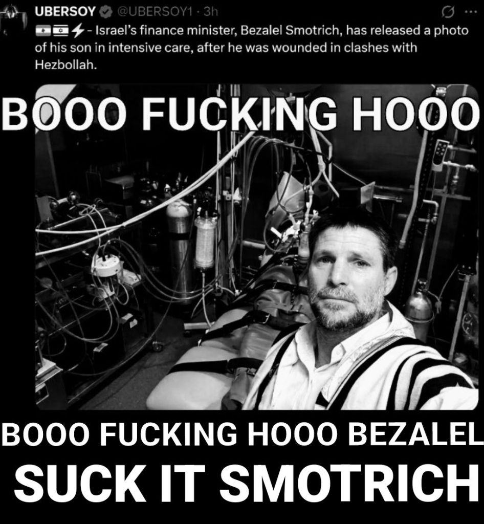 >>2775565>Would anything have happened if he did die?Israel would have spun the hasbara machine into action. They would make some statements how Israel has the right to defend itself, but that his death was regrettable. They would also remind everyone that IDF is the most moral army and only strikes terrorists and every time tries to minimize civilian loss of life and anybody who suggests otherwise is an antisemite.