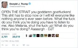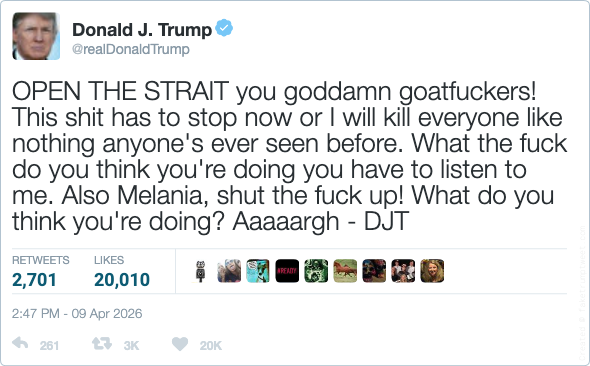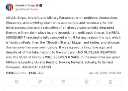 I feel like I'm going crazy, the people who think Trump is serious about this ceasefire in anyway lmao. On the news too they were talking about it like it is serious. This is even less serious than his ultimatum last night.