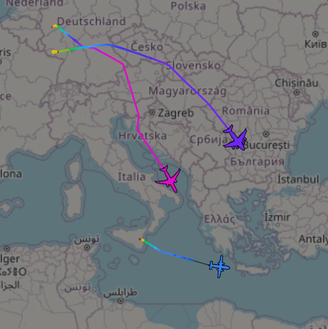 Currently one C-17, one C-26D and one A-350 are on their way to MENA, and earlier today there was six C-17s, one P-8, one KC-135, one A-330 and one A-400.