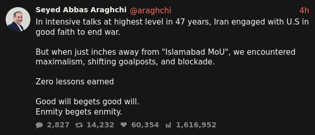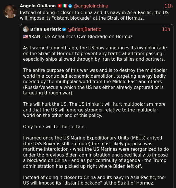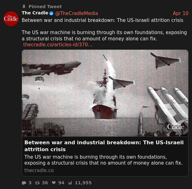 >Useful Xittershttps://xcancel.com/IranObserver0https://xcancel.com/araghchihttps://xcancel.com/conflict_radarhttps://xcancel.com/TheCradleMediahttps://xcancel.com/AliAbunimahhttps://xcancel.com/BrianJBerletichttps://xcancel.com/angeloinchinahttps://xcancel.com/jonelmerhttps://xcancel.com/MarkAmesExiledhttps://xcancel.com/UrOrientalisthttps://xcancel.com/MaxBlumenthalhttps://xcancel.com/dreizinreport/