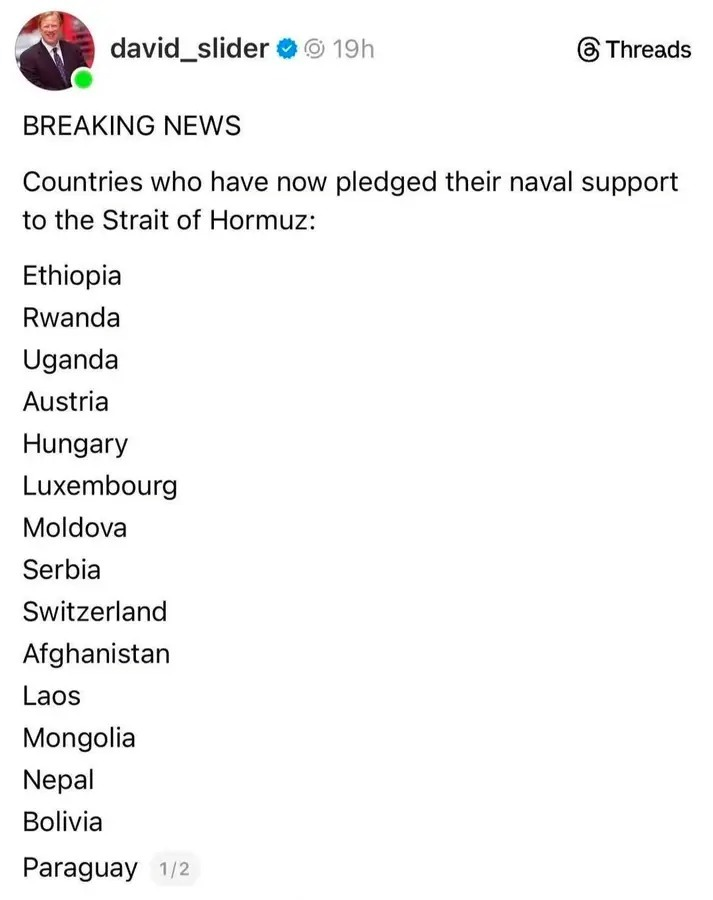 Mar 18: "Our allies must cooperate in reopening the Strait of Hormuz."