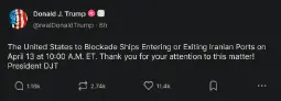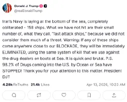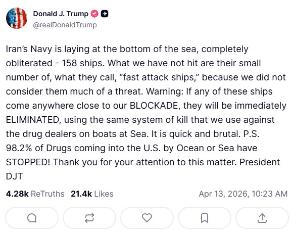 April 12: "Iran promised to open the strait and they didn't do it."