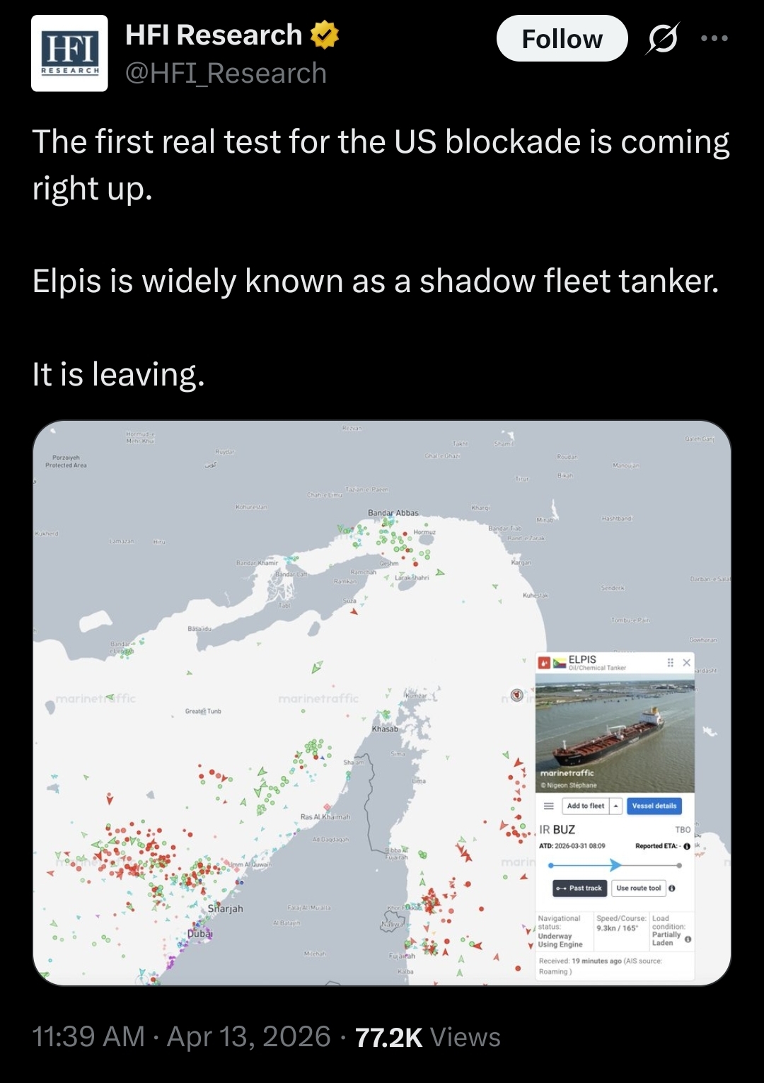 Traffic in the Strait has been limited even in the days since the ceasefire. Marine trackers say over 40 commercial ships have crossed since the start of the ceasefire.