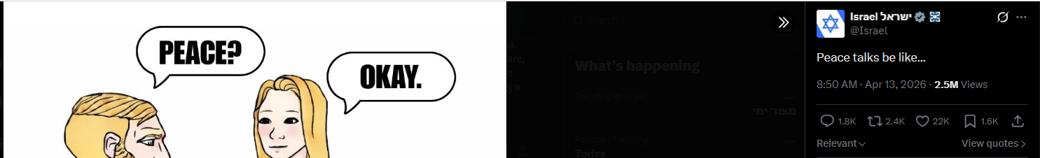 https://apnews.com/article/iran-us-israel-trump-lebanon-april-12-2026-a8a0d22918fc3fb30bc3abf1cd5c5a13 >>2779521Iran of course