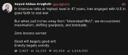 anyways. Iran should immediately resume as before. halt israel's war crimes in Lebanon and on Palestinians