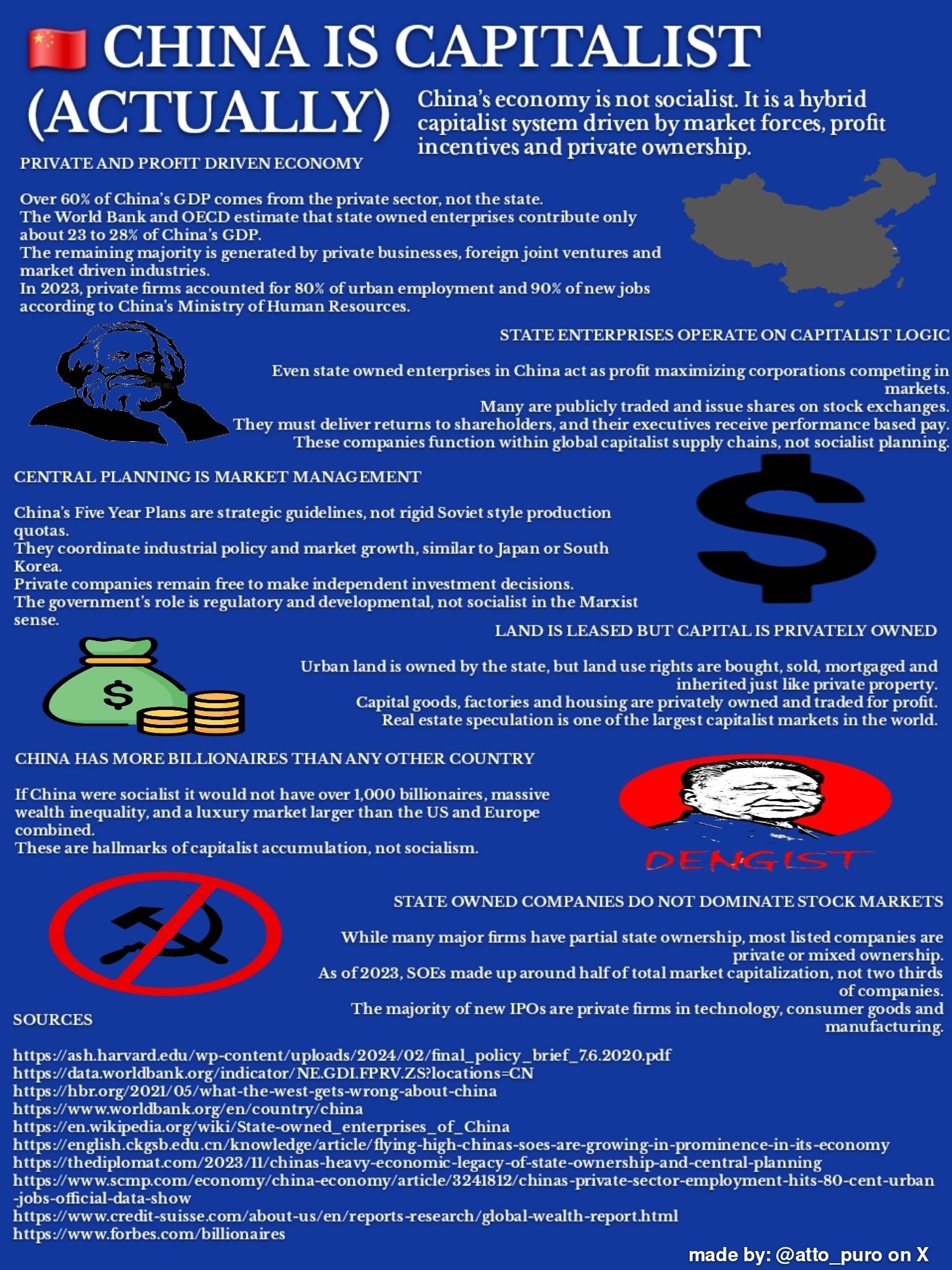 This kind of problem is seldom discussed in the usual debates about China on online Marxist spaces, because online Marxists tend to think more about macro geopolitical dynamics than the domestic economic situation, a mistaken belief that a communist party necessarily pursue hardline communist policies (if Vietnam is lower-stage communism, then Sweden is higher-stage communism), that state intervention into the economy is necessarily communist (the economy of the UAE is 90% made of SOEs, in Indonesia it's 60%, both higher than China) and like the other anon said, there is a lot of orientalism and an important language barrier.
