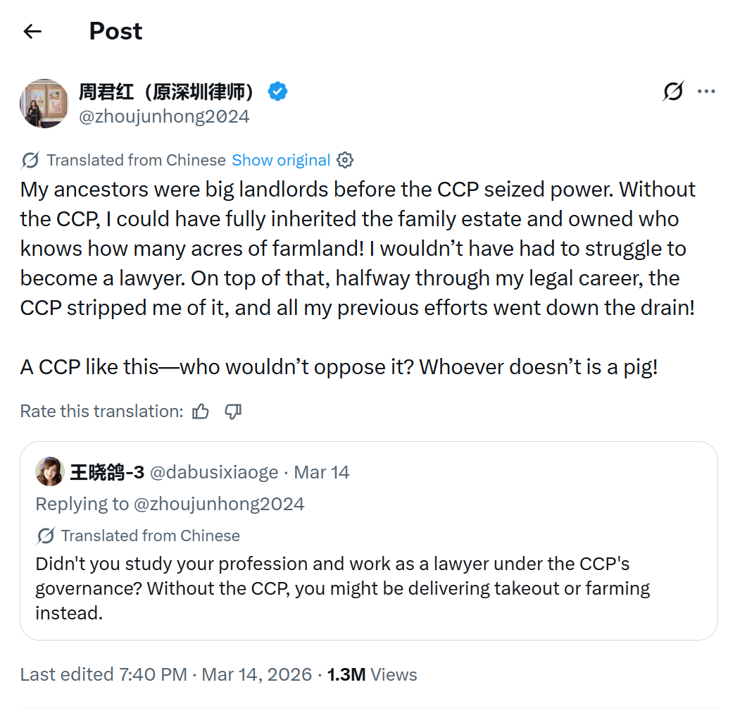 Well, let me tell you: his family drives a Rolls-Royce, owns multiple properties in Hangzhou, and lived in the UK for six or seven years. When his wife was still in school, she was already driving an Audi, living in a luxury penthouse, and buying designer bags like they were groceries.
