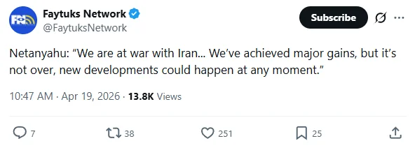 >Hezbollah: As Israeli occupation forces committed yet another violation—adding to a series of flagrant and documented breaches over the three days since the ceasefire came into effect—a convoy comprising eight armored vehicles, moving on Sunday, April 19, 2026, from the town of Al-Taybeh toward the old Al-Sal'a position in the town of Deir Siriane, was struck by an explosion. The blast was triggered by a cluster of explosive devices previously planted at the site by Islamic Resistance fighters. The explosion, which occurred in two phases between 15:40 and 16:40, resulted in the destruction of four Merkava tanks; flames were observed engulfing the vehicles before the enemy proceeded to withdraw them from the scene at 18:00.