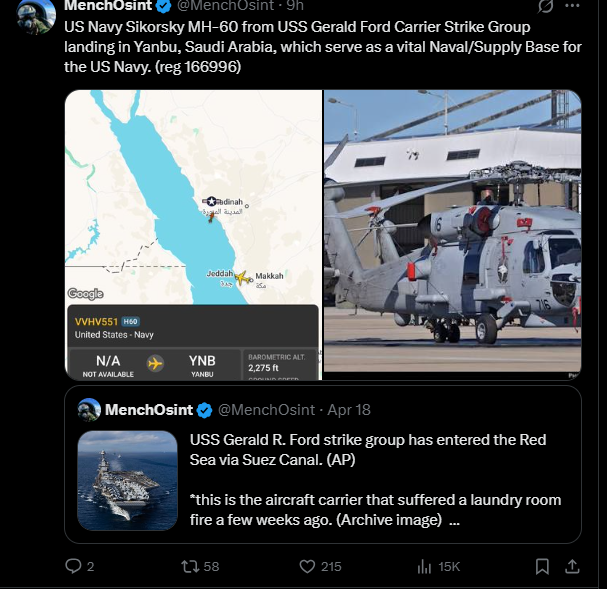 Currently three C-17s are on their way to MENA. And earlier today there was another three C-17s.