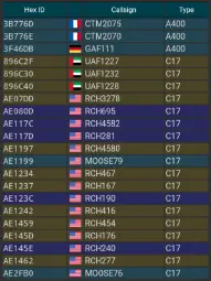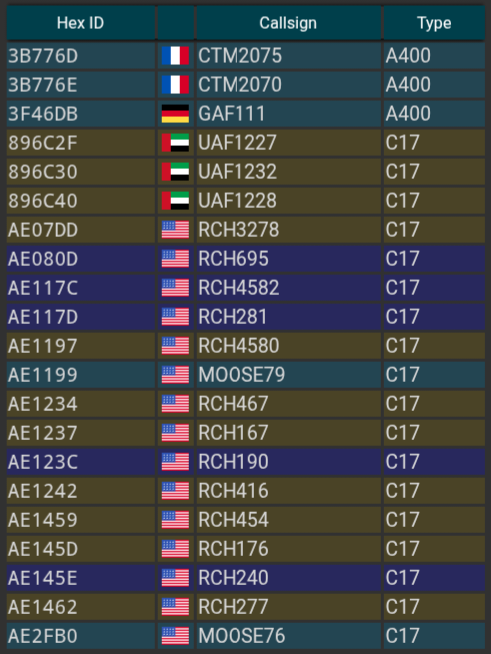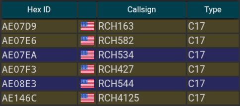 Lots of planes coming in just now. Currently eight C-17s are on their way to MENA. And earlier today there were ten C-17s and three A-400s.