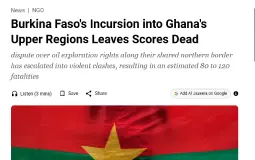 >Tensions between Burkina Faso and Ghana escalated sharply this week as a long-simmering dispute over oil exploration rights along their shared northern border erupted into a brief but deadly conflict, leaving at least 10 to 30 people dead, according to regional officials.