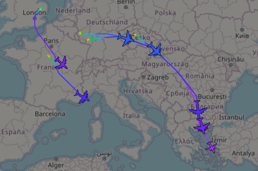 https://globe.adsbexchange.com/?icao=498422,ae07ef,ae49c6,ae4f12,3b7760,ae0659,ae0578,ae10b8,ae07e3,ae2fa6,ae057d,ae4f13,ae123d,ae080b,ae0677,ae144c,ae1449Iranian government plane heading east.