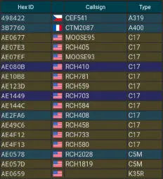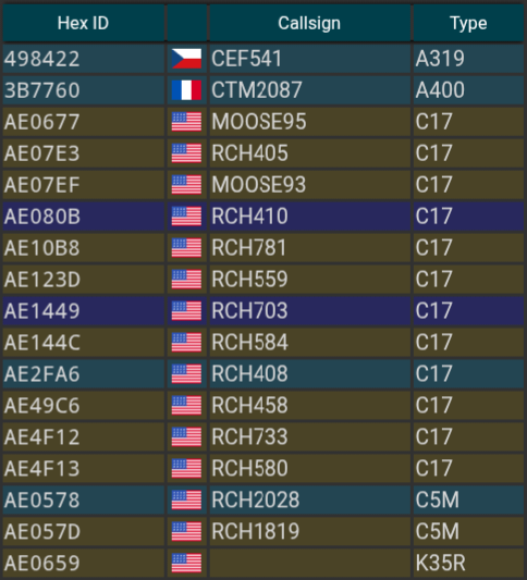 C-5, three C-17s, one KC-135, one A-400 and one A-319 are heading to MENA. And earlier today there was another