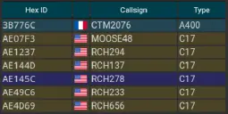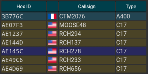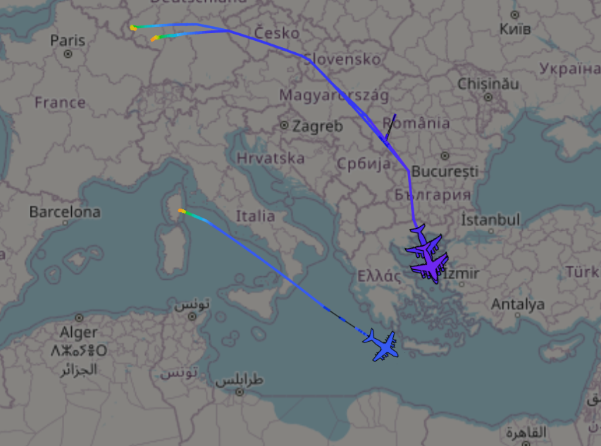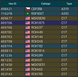 There are no planes currently heading to MENA. Earlier today there were thirteen C-17s, one A-330 and one A-319.