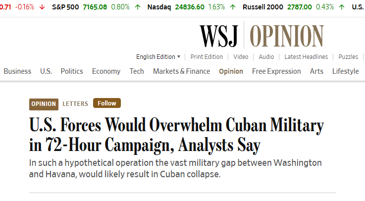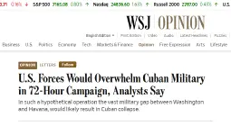 >>2791522Concensus building for Cuba invasion in full swing. The real question is will we try to land a ground invasion or just bomb the shit out of their infrastructure to imiserate them?