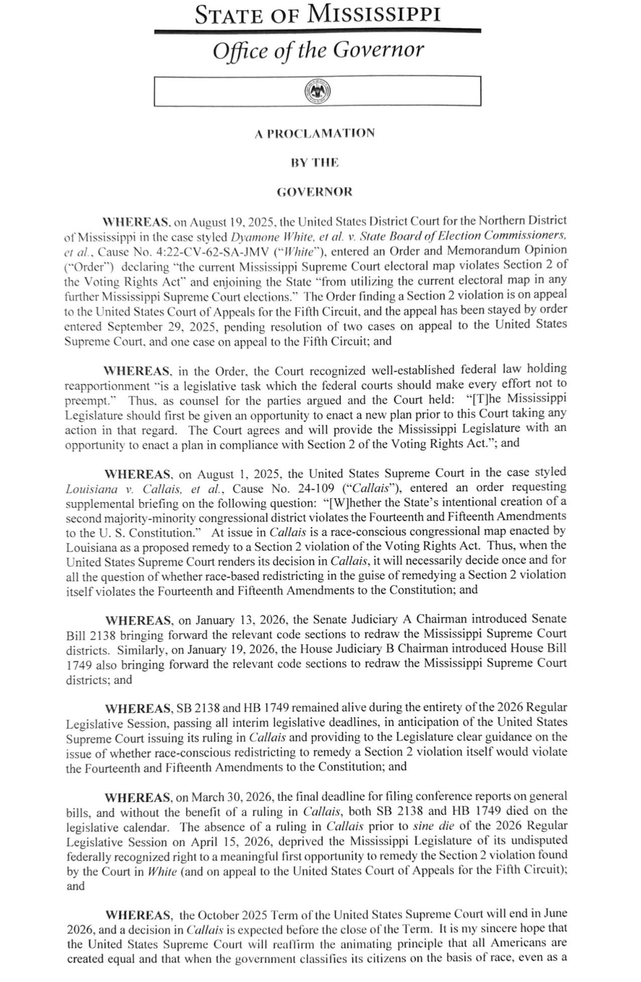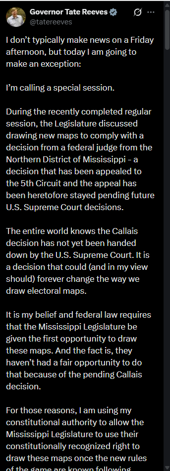 >>2791955Aren’t red states like Mississippi already so heavily gerrymandered that literally any further attempts at redistricting, if not outright impossible, would make them susceptible to Democrats gaining more seats?