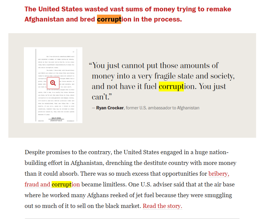 >>2792039>You might be wondering "where is the 1 trillion dollars going if the logistics are this bad" and the answer is private contractors who overcharge 100x (without exaggeration) for basic suppliesand also through corrupt officials. afghan papers showed the level of corruption present in Afghanistan when was US occupied, and how the officials were not only aware, they kept pumping that money there. why? trying to keep alive the government the same way they did with South Vietnam.