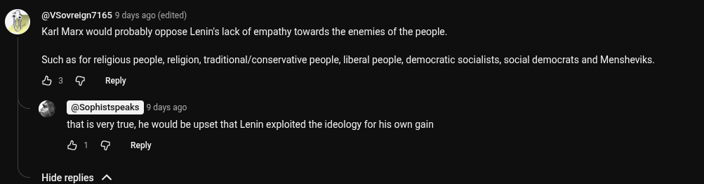 Top comment: "Marx would probably oppose Lenin's sick lack of empathy to the people"