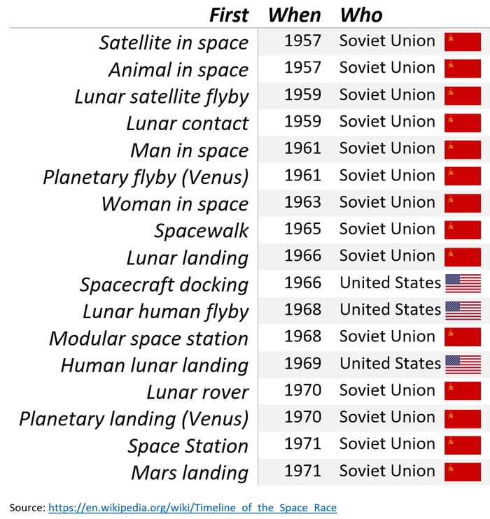>>2793405>imagine believing this also go back and read the rest of the post.I dont, i was talking to the neoliberal shill. But yes, competition (there was no single centrally planned unit like under nasa) was the sole reason why the USSR werent the first at the moon. I dont consider that to important of a goal but the USSR did try.